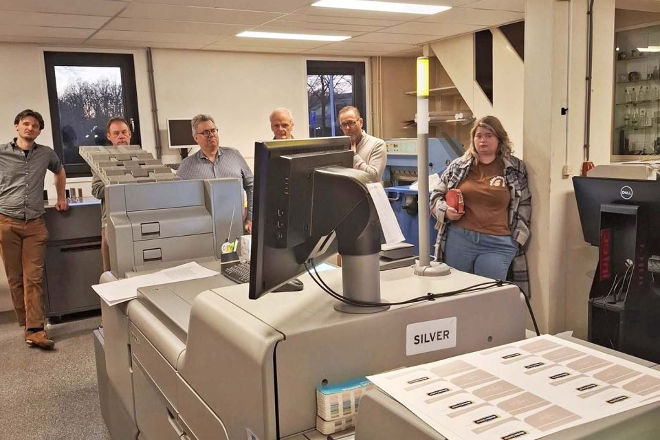 Na de inhoudelijke presentatie door Patrick werd een rondleiding gegeven door de productieruimte waar de werking en mogelijkheden van diverse machines werden gedemonstreerd. Speciale aandacht tijdens deze demonstraties waren voor de nieuwe digitale drukpers met metallic en neon kleuren en werden de creatieve mogelijkheden getoond van digitaal stansen. Verder was er aandacht voor de verschillende afwerkingsapparatuur die wordt gebruikt om drukwerk zo efficiënt mogelijk af te werken met zo weinig mogelijk handelingen.